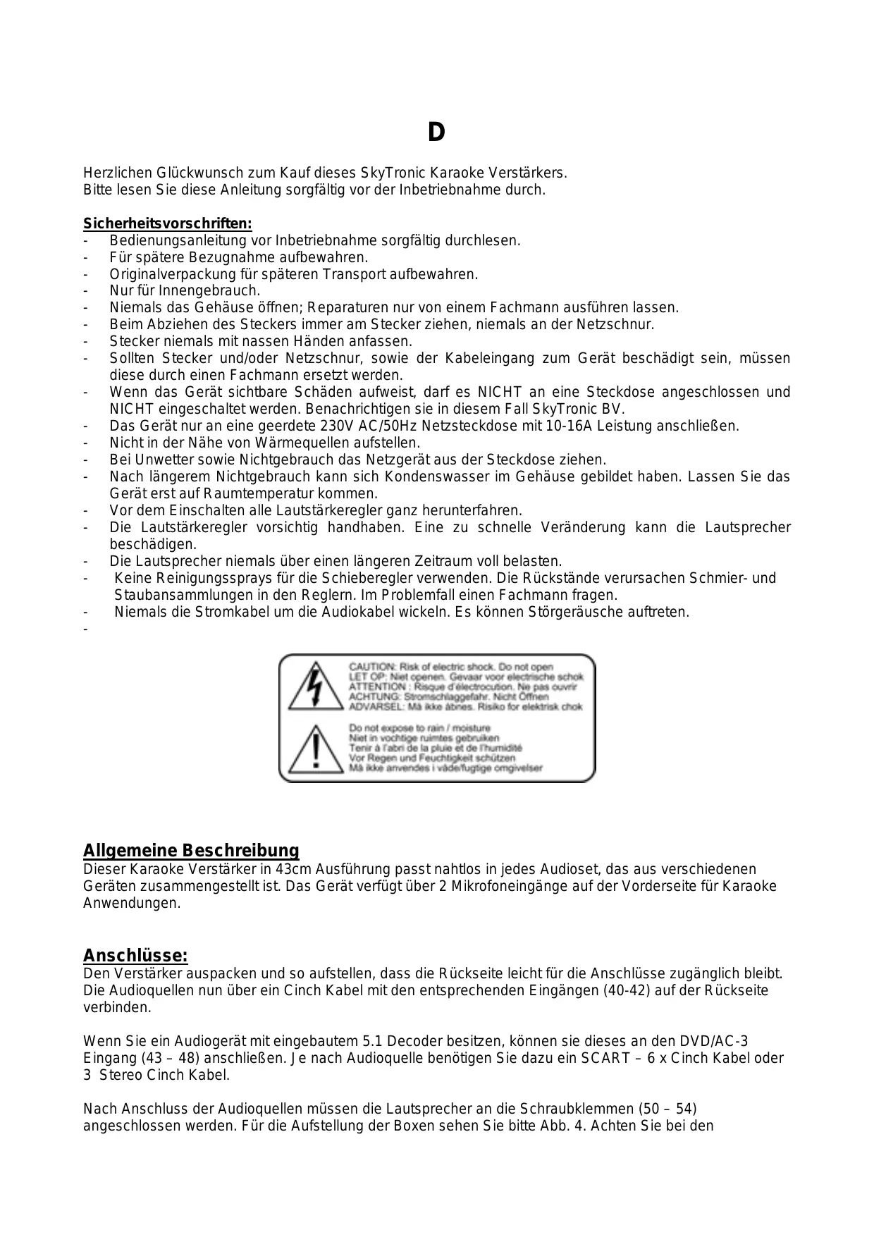Laden Sie die Anleitung für Ihr Audioverstärker kostenlos im PDF-Format! Finden Sie Ihr Handbuch 103.156 - SKYTRONIC und nehmen Sie Ihr elektronisches Gerät wieder in die Hand. Auf dieser Seite sind alle Dokumente veröffentlicht, die für die Verwendung Ihres Geräts notwendig sind. 103.156 von der Marke SKYTRONIC.