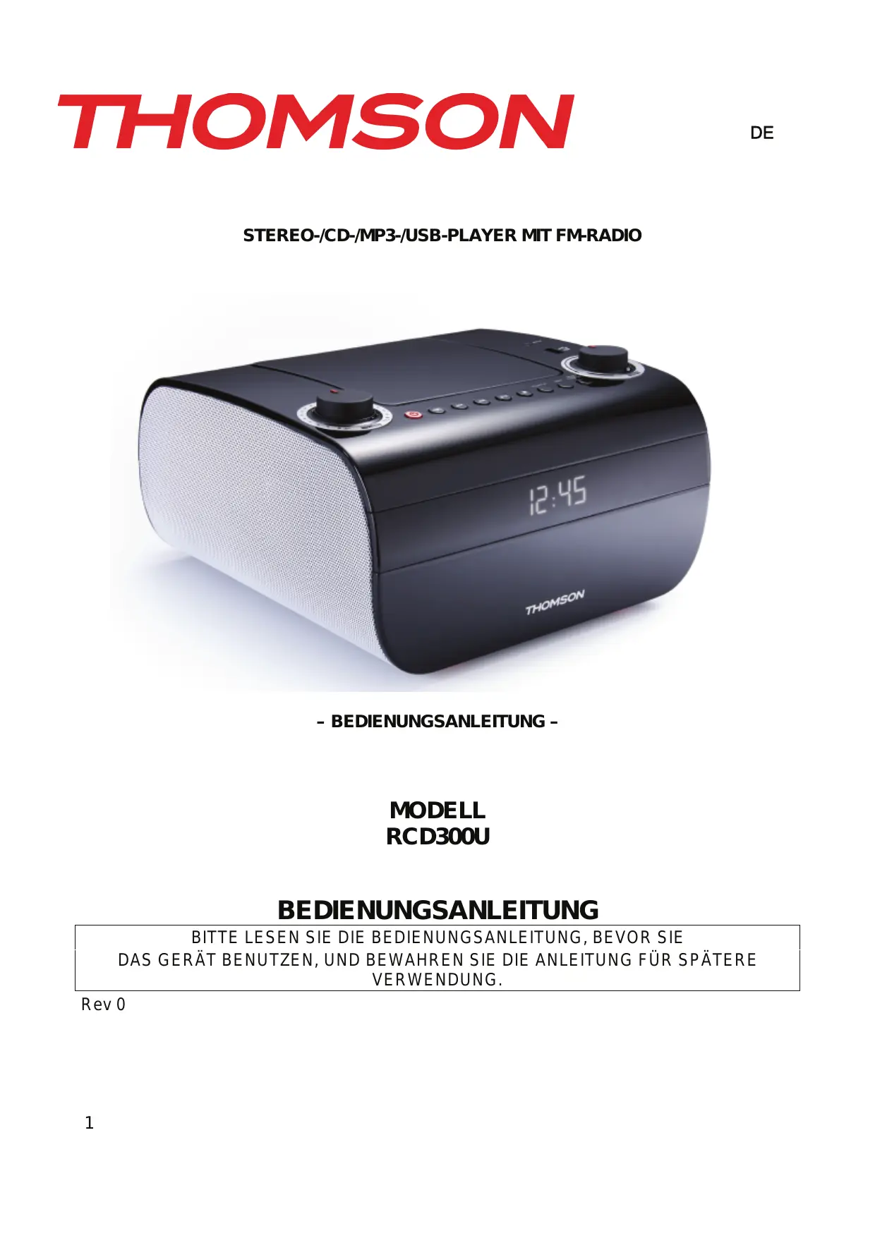 RCD300U - CD-Player mit Radio THOMSON - Kostenlose Bedienungsanleitung