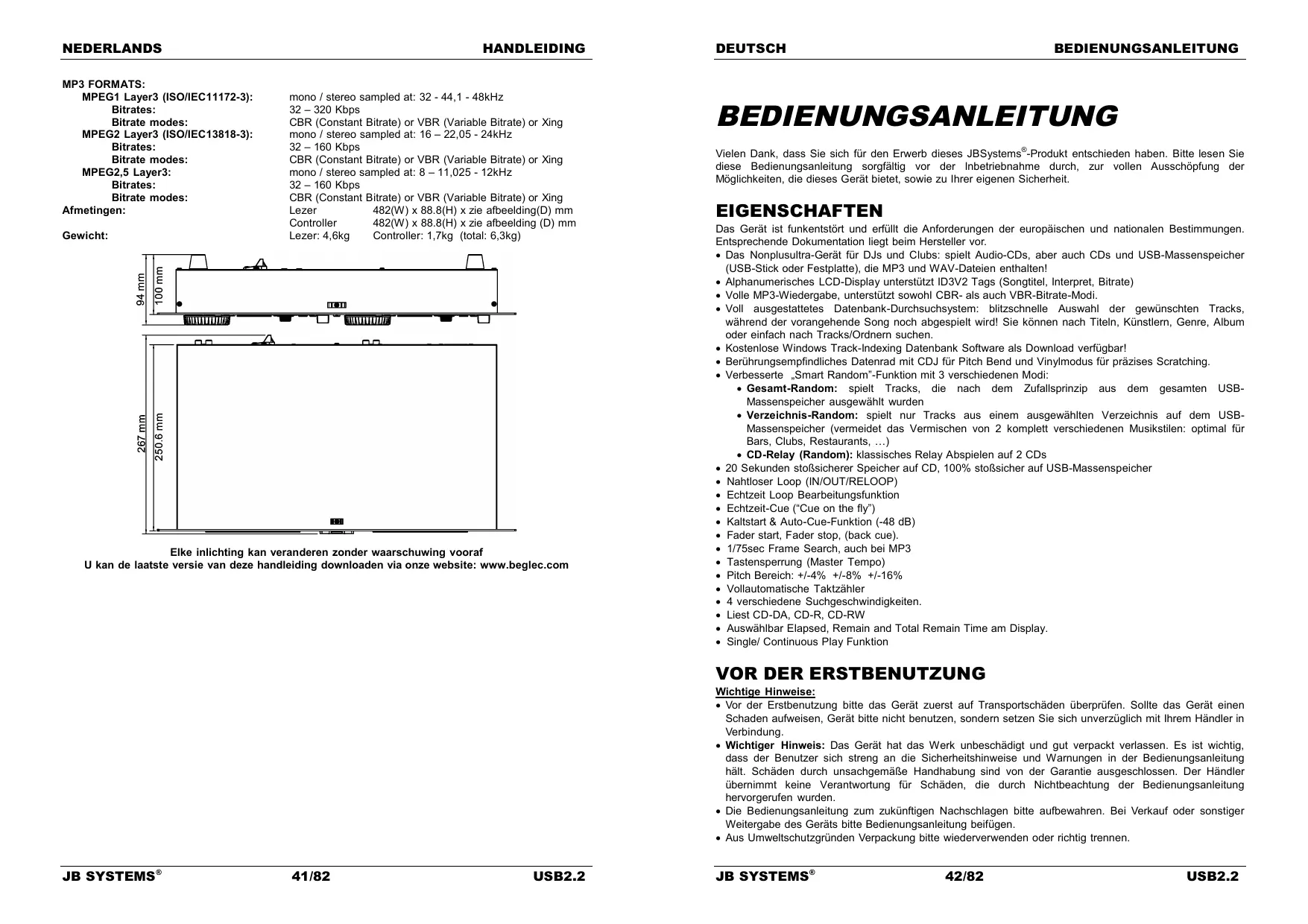 | Max. Tracks pro Folder: | CD: 255 | USB: 999 |