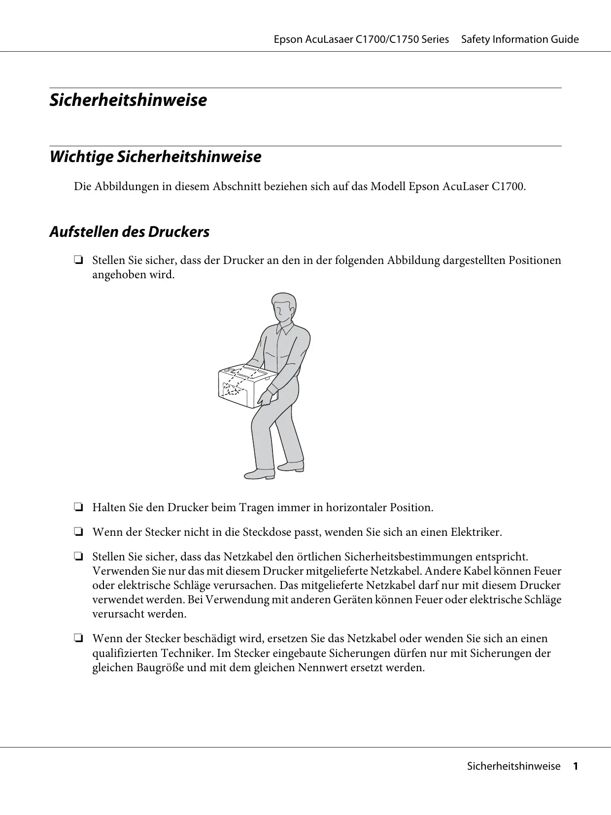 Epson AcuLasaer C1700/C1750 Series Safety Information Guide