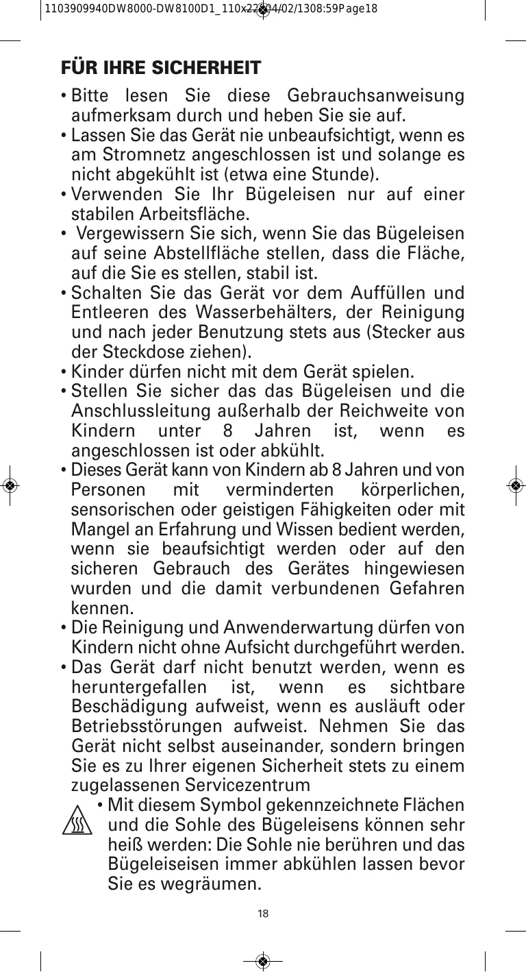Laden Sie die Anleitung für Ihr Bügeleisen kostenlos im PDF-Format! Finden Sie Ihr Handbuch PRO MASTER DW8112D1 - ROWENTA und nehmen Sie Ihr elektronisches Gerät wieder in die Hand. Auf dieser Seite sind alle Dokumente veröffentlicht, die für die Verwendung Ihres Geräts notwendig sind. PRO MASTER DW8112D1 von der Marke ROWENTA.
