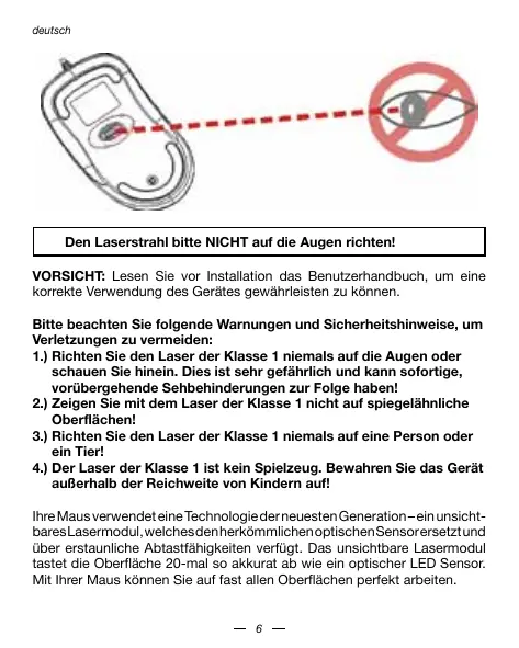 3.) Richten Sie den Laser der Klasse 1 niemals auf eine Person oder ein Tier!