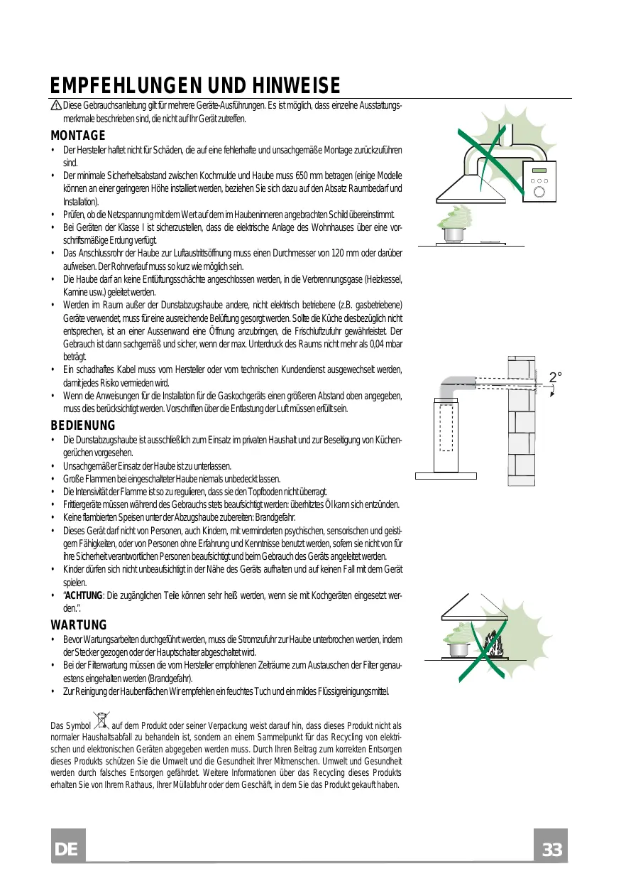 - Zur Reinigung der Haubenflächen Wir empfehlen ein feuchtes Tuch und ein mildes Flüssigreinigungsmittel. Das Symbol auf dem Produkt oder seiner Verpackung weist darauf hin, dass dieses Produkt nicht als normaler Haushaltsabfall zu behandeln ist, sondern an einem Sammelpunkt für das Recycling von elektrischen und elektronischen Geräten abgegeben werden muss. Durch Ihren Beitrag zum korrekten Entsorgen dieses Produkts schützen Sie die Umwelt und die Gesundheit Ihrer Mitmenschen. Umwelt und Gesundheit werden durch falsches Entsorgen gefährdet. Weitere Informationen über das Recycling dieses Produkts erhalten Sie von Ihrem Rathaus, Ihrer Müllabfuhr oder dem Geschäft, in dem Sie das Produkt gekauft haben.