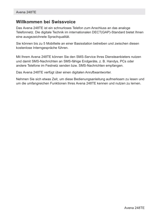 BEDIENUNGSANLEITUNG AVENA 248 SWISSVOICE
