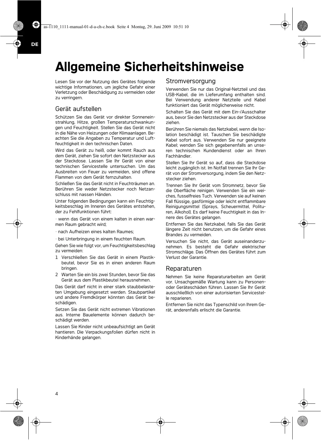 as-1110_1111-manual-01-d-a-ch-c.book Seite 4 Montag, 29. Juni 2009 10:51 10
