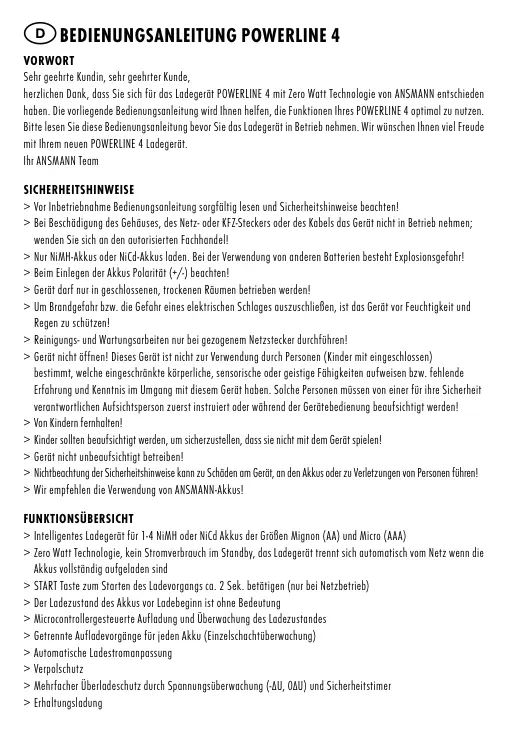 BEDIENUNGSANLEITUNG POWERLINE 4 ANSMANN