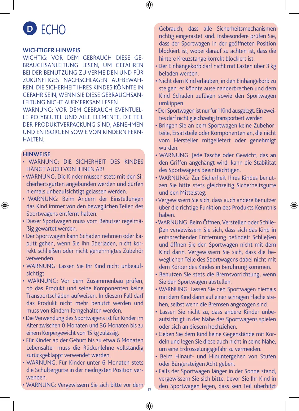 BEDIENUNGSANLEITUNG ECHO LIGHT CHICCO