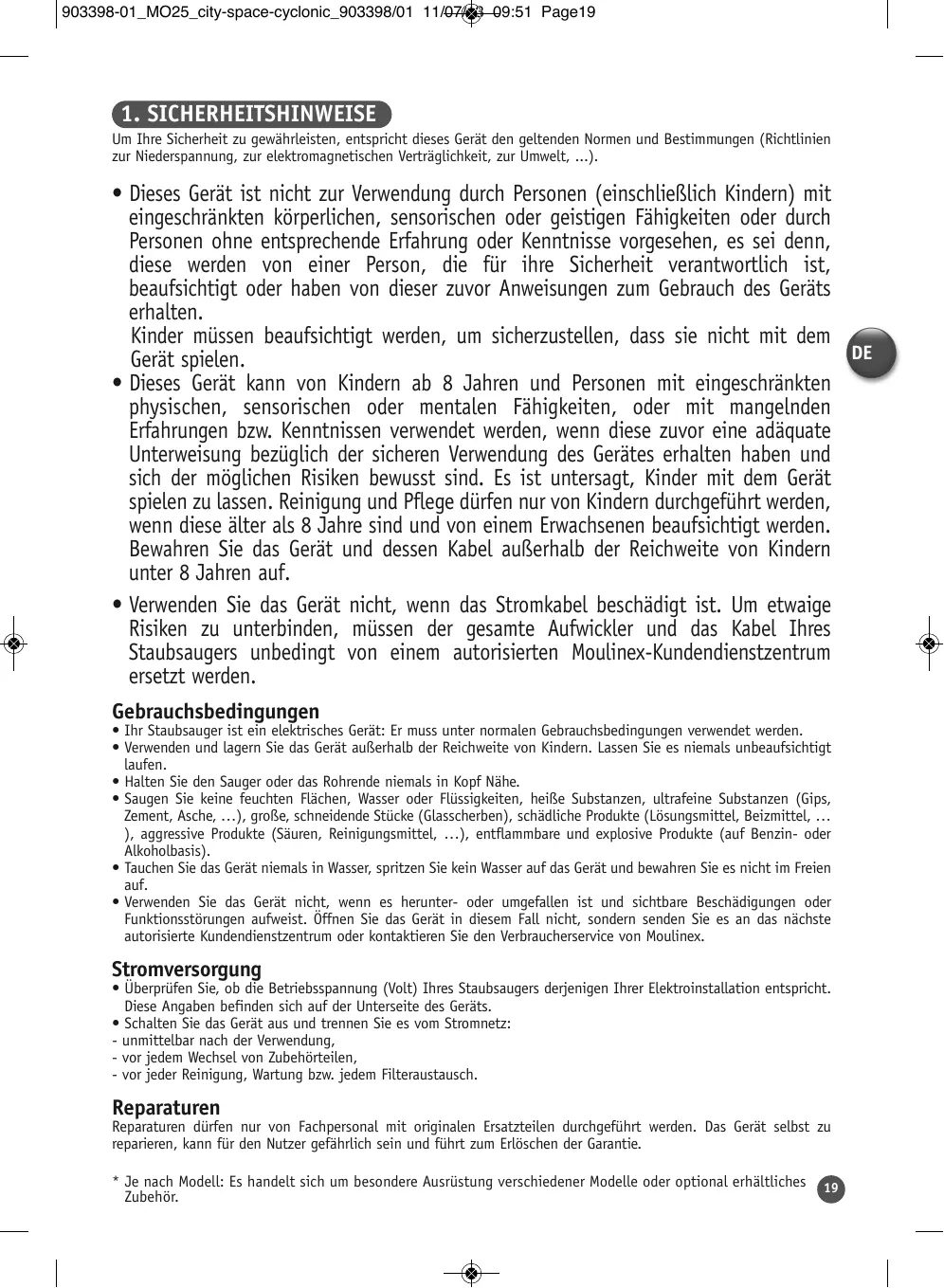 - Je nach Modell: Es handelt sich um besondere Ausrüstung verschiedener Modelle oder optional erhältliches Zubehör. 903398-01_MO25_city-space-cyclonic_903398/01 11/07/13 09:51 Page23