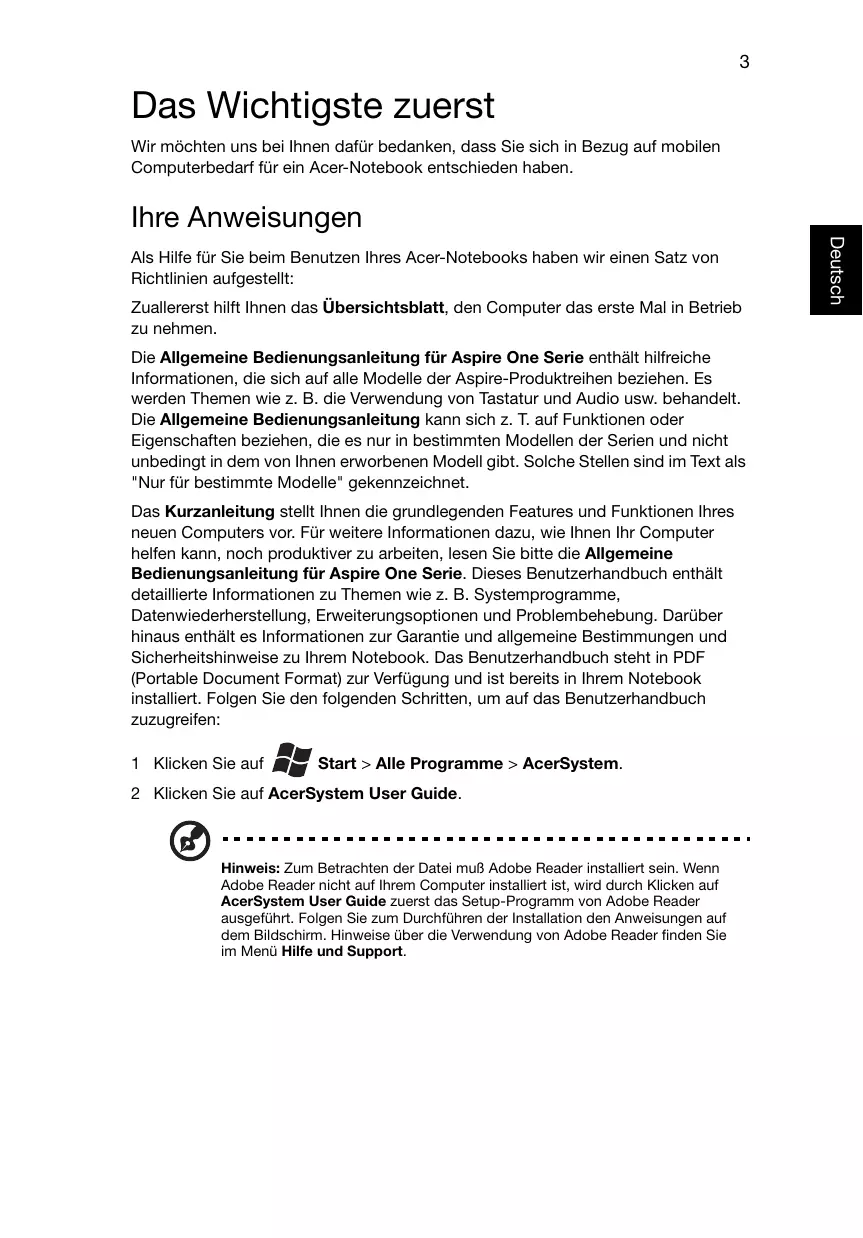 Laden Sie die Anleitung für Ihr Netbook kostenlos im PDF-Format! Finden Sie Ihr Handbuch ASPIRE ONE D270-N261G326CK - ACER und nehmen Sie Ihr elektronisches Gerät wieder in die Hand. Auf dieser Seite sind alle Dokumente veröffentlicht, die für die Verwendung Ihres Geräts notwendig sind. ASPIRE ONE D270-N261G326CK von der Marke ACER.
