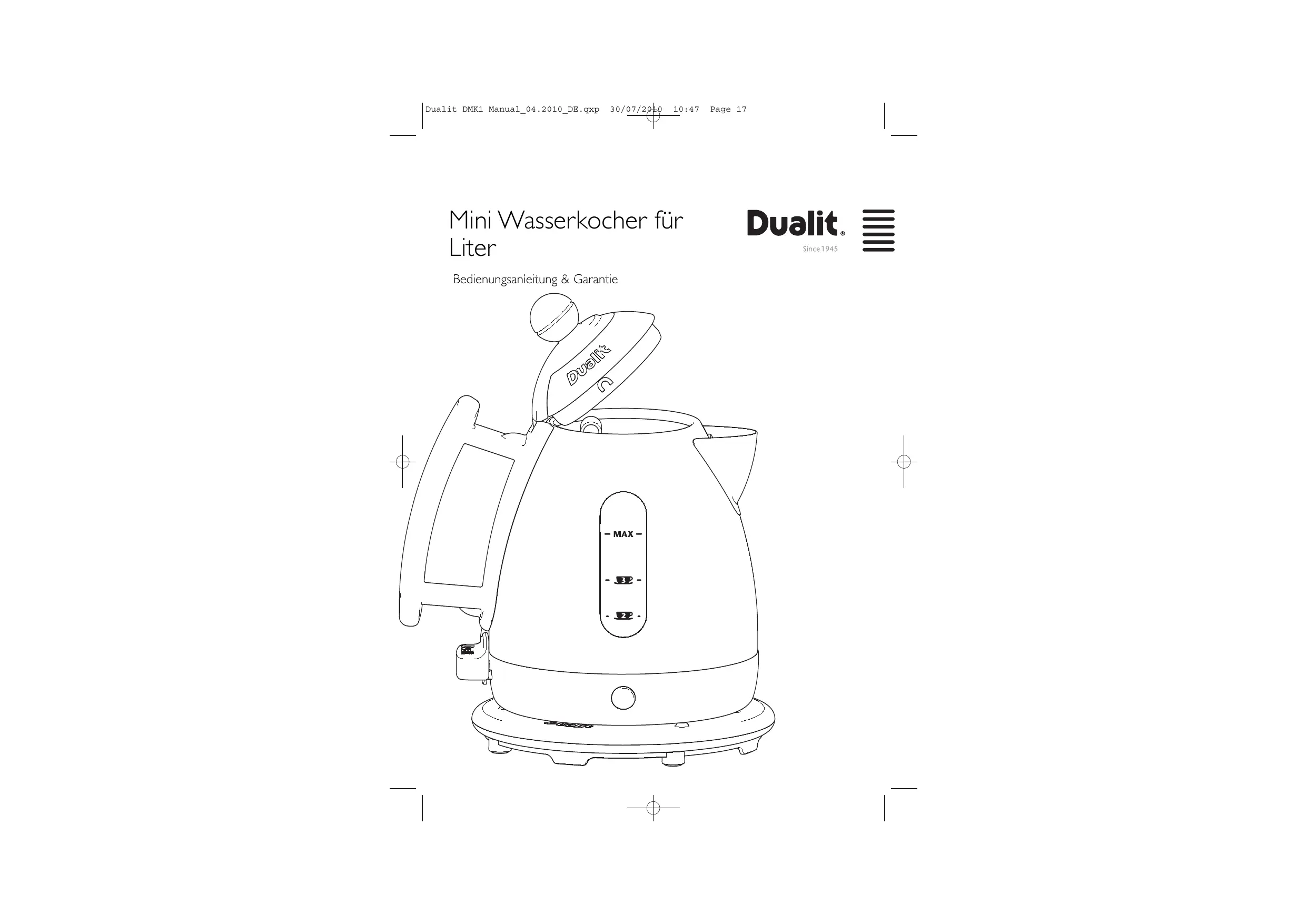 DMK 1 - Elektrischer Wasserkocher DUALIT - Kostenlose Bedienungsanleitung
