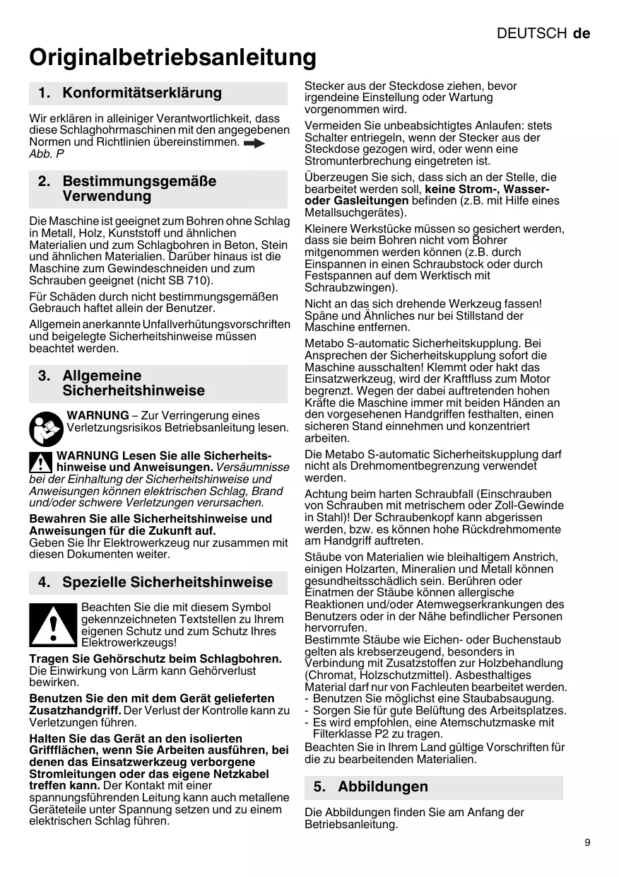 Laden Sie die Anleitung für Ihr Schlagbohrmaschine kostenlos im PDF-Format! Finden Sie Ihr Handbuch SBE 1000 - METABO und nehmen Sie Ihr elektronisches Gerät wieder in die Hand. Auf dieser Seite sind alle Dokumente veröffentlicht, die für die Verwendung Ihres Geräts notwendig sind. SBE 1000 von der Marke METABO.