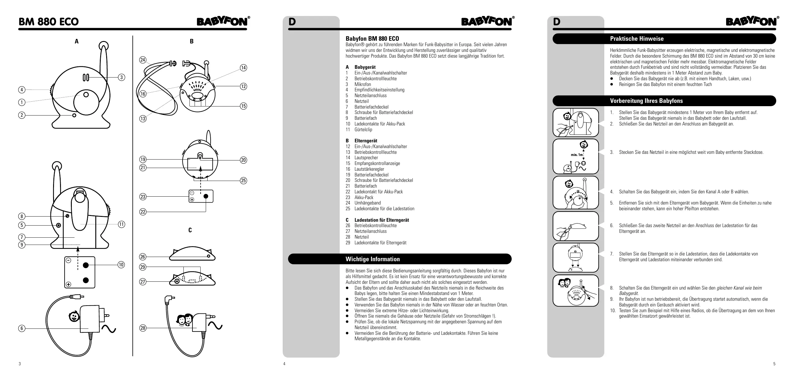 Praktische Hinweise Babyfon® gehört zu führenden Marken für Funk-Babysitter in Europa. Seit vielen Jahren widmen wir uns der Entwicklung und Herstellung zuverlässiger und qualitativ hochwertiger Produkte. Das Babyfon BM 880 ECO setzt diese langjährige Tradition fort.