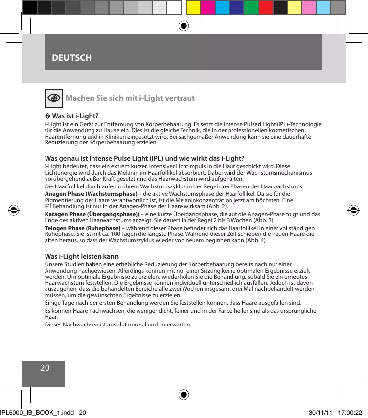 - i-Light ist bei weiß, grauer, blonder oder roter Körperbehaarung nicht wirksam.