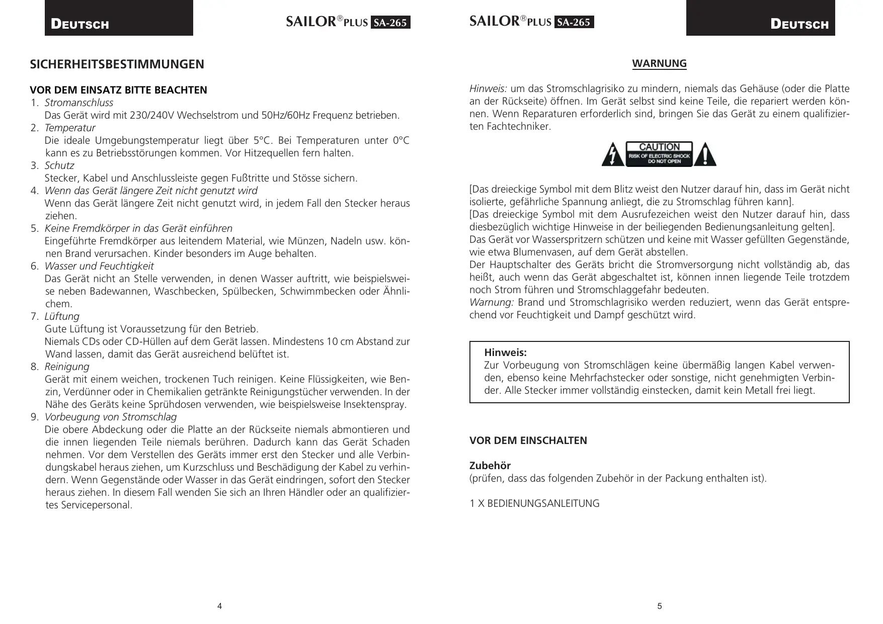 BEDIENUNGSANLEITUNG PLUS SA-265 DABDAB+ HOME RADIO SAILOR