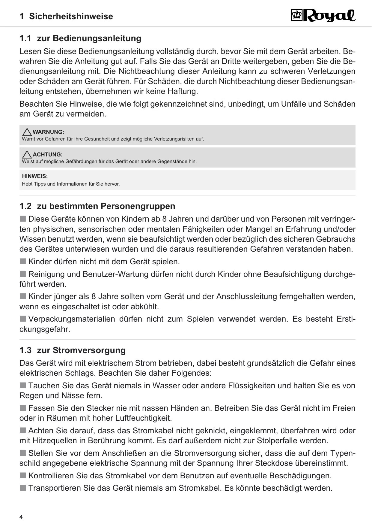 N'utilisez jamais un appareil défectueux ou ayant un cordon d'alimentation abîmé. Si le cordon de raccordement au secteur de cet appareil est endommagé, faites-le remplacer par le fabricant, son service après-vente ou toute personne ayant des compétences similaires, ceci afin d'éviter tout danger. Amenez l'appareil à réparer dans un magasin spécialisé ou au service après-vente RoyalAppliance, (ZPage 46, « International Service »). 17