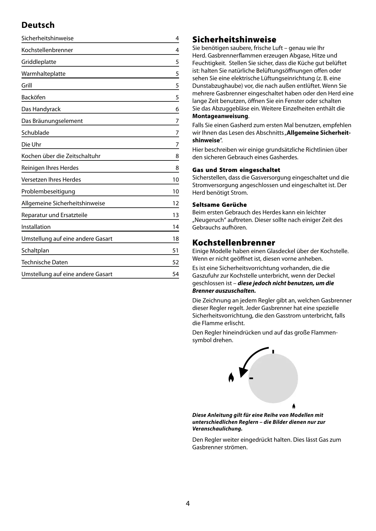 Falls Sie einen Gasherd zum ersten Mal benutzen, empfehlen wir Ihnen das Lesen des Abschnitts „Allgemeine Sicherheitschinweise".