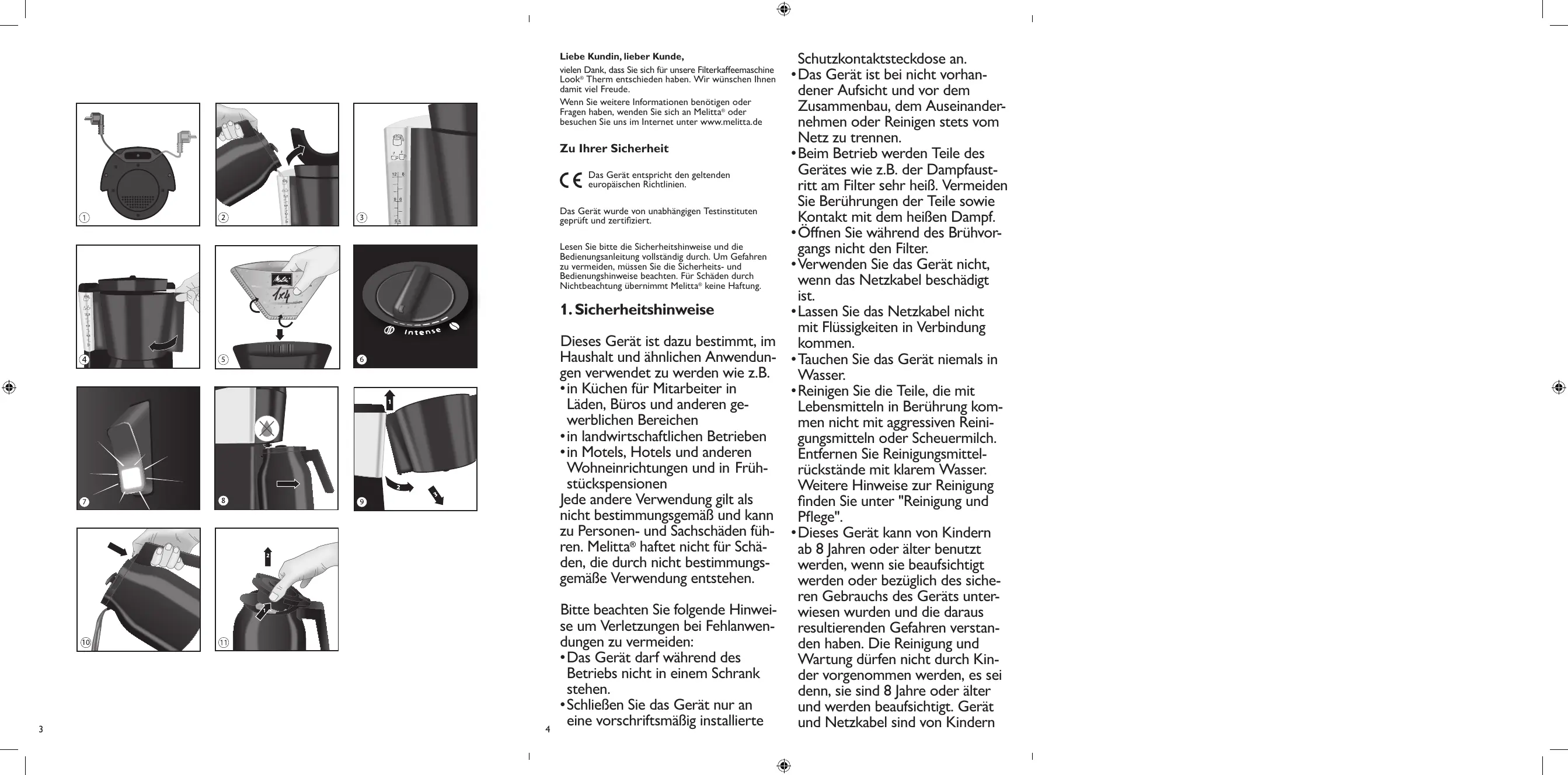 - Die Filtertüte können Sie mit Hilfe des entnehmbaren Innenfilters einfach und problemlos entsorgen. Dear customer, Thank you for buying our Look® Therm filter coffee maker. We hope you will be very happy with it. If you need further information or if you have any questions please contact Melitta® or visit us on the Internet at www.international.melitta.de