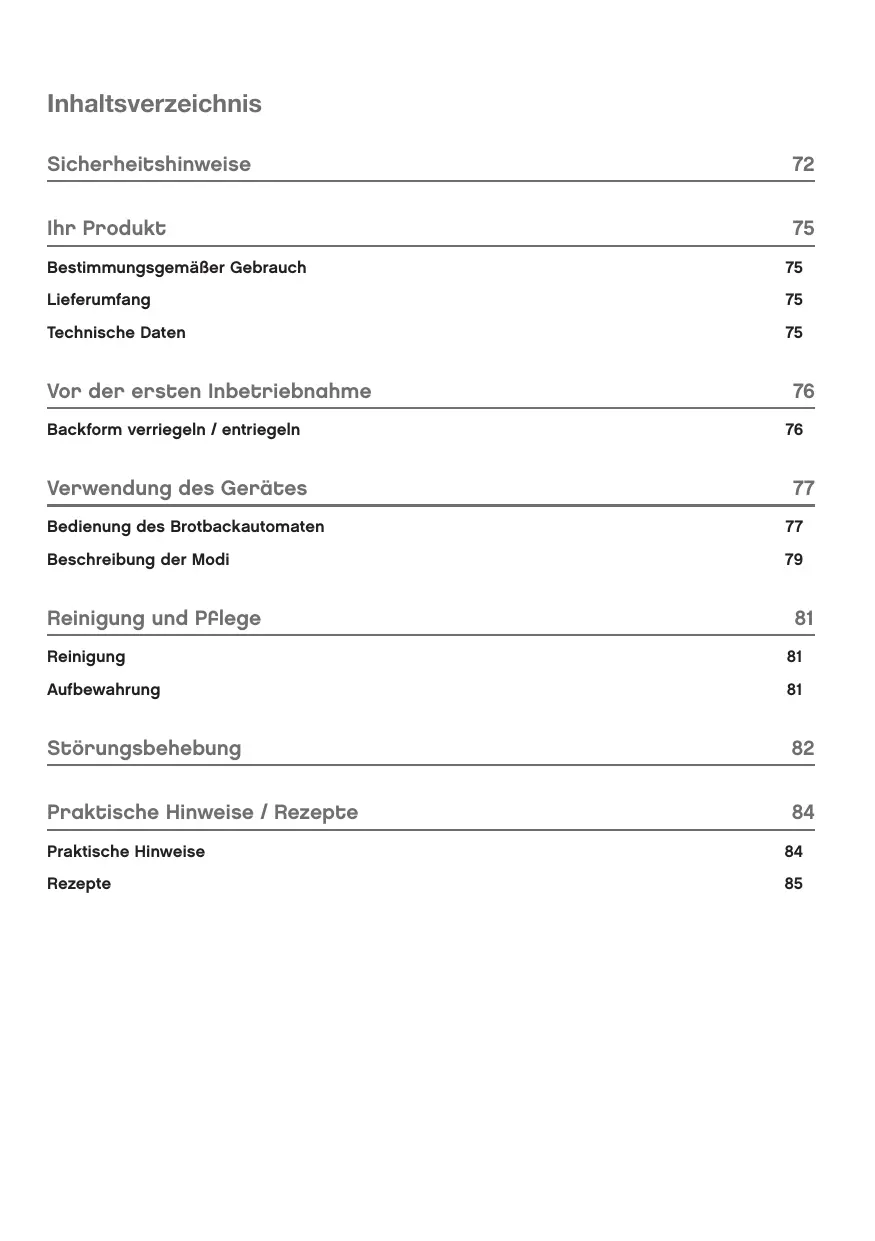 - Dieses Gerät ist zum Backen von Brot und Kuchen, Kneten von Teig und Herstellen von Marmelade geeignet. Benutzen Sie es nicht für andere Zwecke.