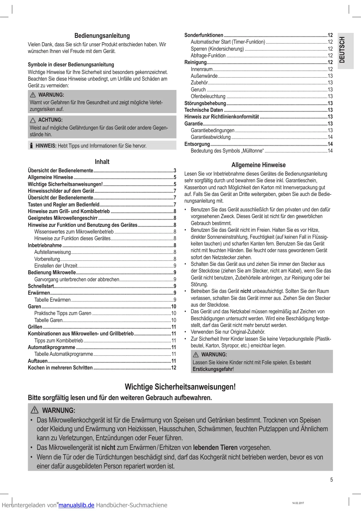 Heruntergeladen von manualslib.de Handbücher-Suchmachiene Heruntergeladen von manualslib.de Handbücher-Suchmachiene Stand 02 / 2017 MWG 2270 CB Made in P.R.C.