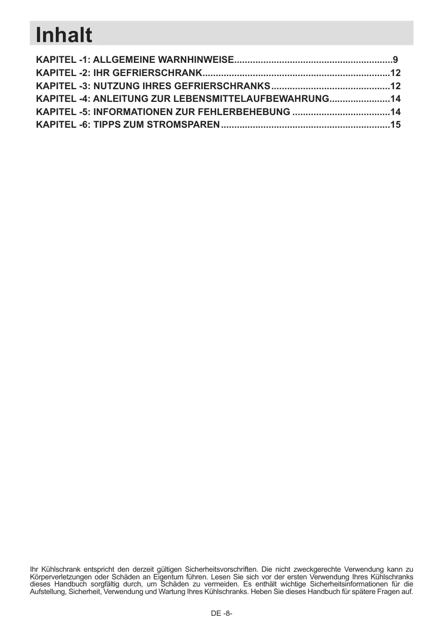 • Veuillez lire attentivement le manuel d'utilisation avant de procéder à l'installation et à l'utilisation de votre appareil. Notre responsabilité ne saurait être engagée en cas de dommages dus à une mauvaise utilisation du produit. • Respectez toutes les consignes figurant sur votre appareil et dans le manuel d'utilisation fourni, puis conservez ce dernier en lieu sûr afin de résoudre les éventuels problèmes techniques susceptibles de se poser à l'avenir. • Le présent appareil a été fabriqué pour les ménages et pour être utilisé uniquement par ceux-ci. Il ne convient donc pas à une utilisation commerciale ou commune. Une telle utilisation entraînera l'annulation de la garantie et notre entreprise ne saura être responsable des dommages encourus. • Le présent appareil a été fabriqué pour être utilisé à domicile et convient uniquement au refroidissement et à la conservation des denrées. Il n’est donc adapté ni pour une utilisation commerciale, ni pour une utilisation commune, encore moins pour une conservation des substances différentes des denrées alimentaires. Notre entreprise n’est pas responsable des pertes qui surviendraient dans le cas contraire.