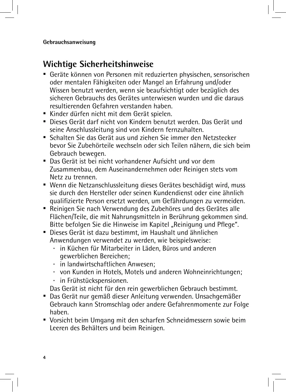 ▪▪ No asumiremos ninguna responsabilidad por posibles daños en caso de un uso diferente al previsto, un manejo incorrecto o una reparación que no haya sido realizada por profesionales. En esos casos están excluidas también las prestaciones de garantía. ▪▪ El aparato no se ha diseñado para el uso comercial. ▪▪ El suplemento de pincho del alimentador es afilado: ¡riesgo de lesiones!