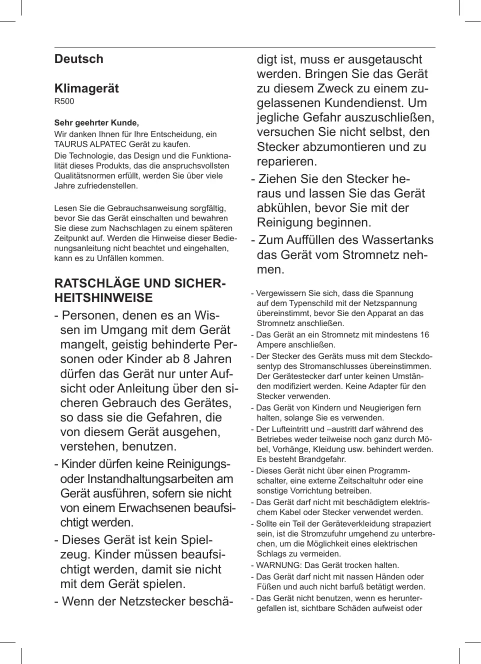 HOME AC 3100 - Klimaanlage TAURUS - Kostenlose Bedienungsanleitung