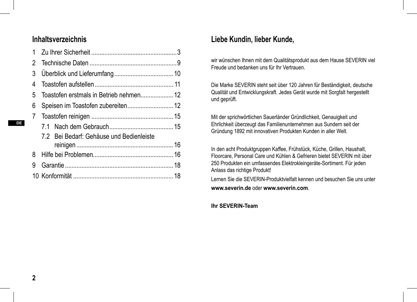 Ihre Gemeindeverwaltung bzw. Ihr Fachhändler erteilen Auskunft über die ordnungsgemäße Entsorgung. TIPP: – Wenn Sie das Problem nicht mithilfe der Tabelle beheben konnten, wenden Sie sich an unseren Service. – Falls Sie Ersatzteile oder Zubehör zu Ihrem Toastofen benötigen, besuchen Sie unseren Onlineshop unter der Rubrik „Service/ Ersatzteilshop“ auf unserer Website www. severin.de.