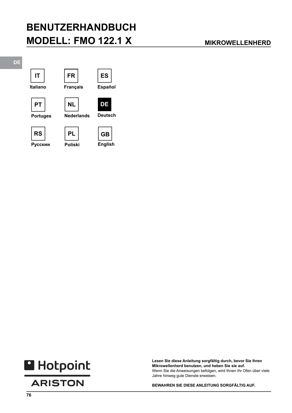 BEDIENUNGSANLEITUNG MD544IXHA HOTPOINT