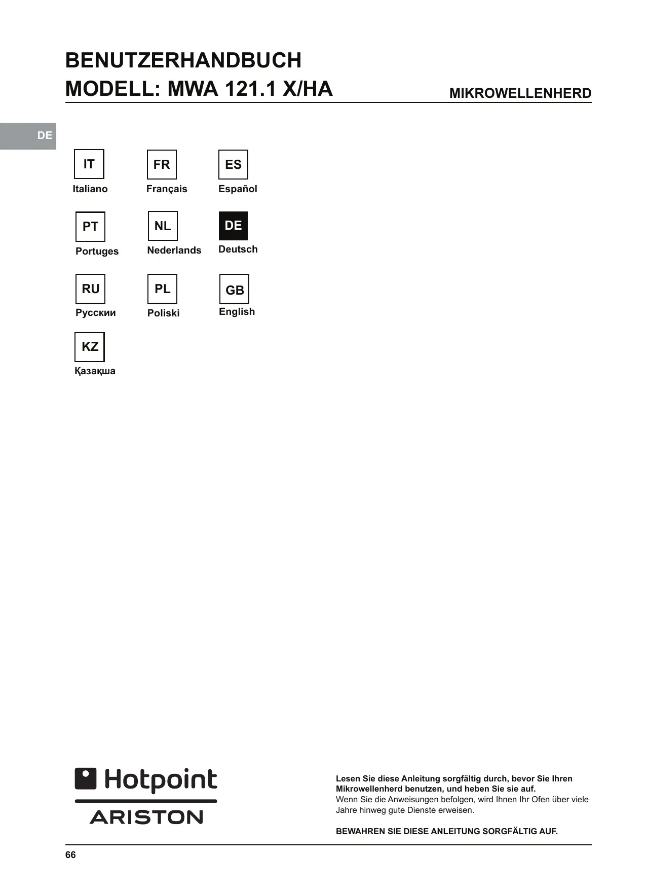 BEDIENUNGSANLEITUNG MP776IXHA HOTPOINT
