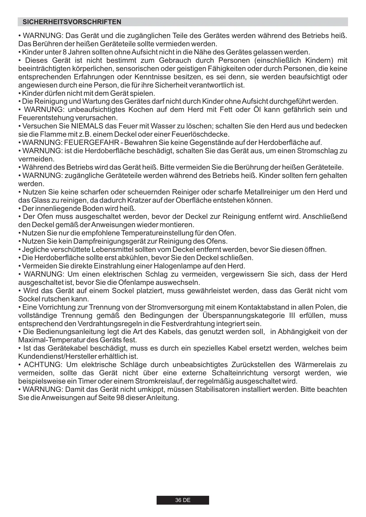 Sicherheitsvorschriften 36