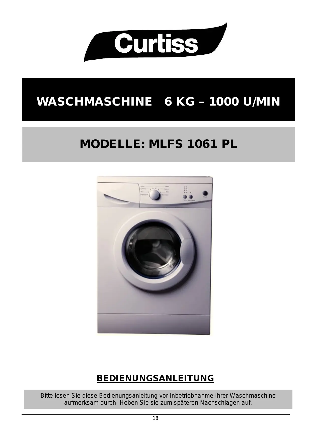 MLFS 085IPL - Waschmaschine CURTISS - Kostenlose Bedienungsanleitung