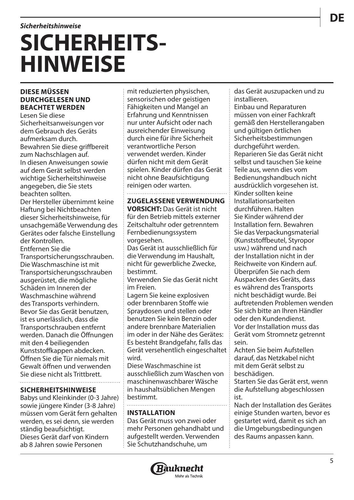 Sicherheitshinweise, Gebrauchs- und Installationsanleitung www.bauknecht.eu/register DEUTSCH . . . . . . . . . . . . . . . . . . . . . . . . . . . . . . . . . . . . . . . 3