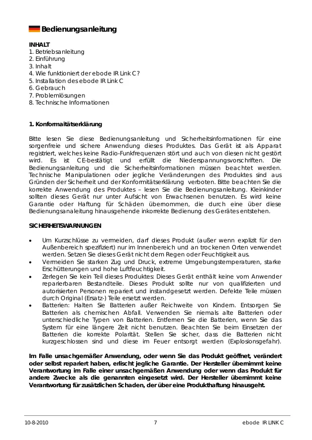 BEDIENUNGSANLEITUNG IR LINK C EBODE