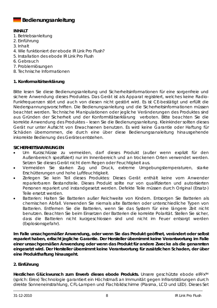 BEDIENUNGSANLEITUNG IR LINK FLUSH EBODE