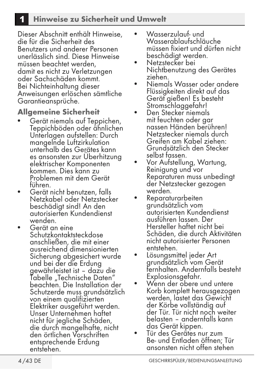 1 HINWEISE ZU SICHERHEIT UND UMWELT 4