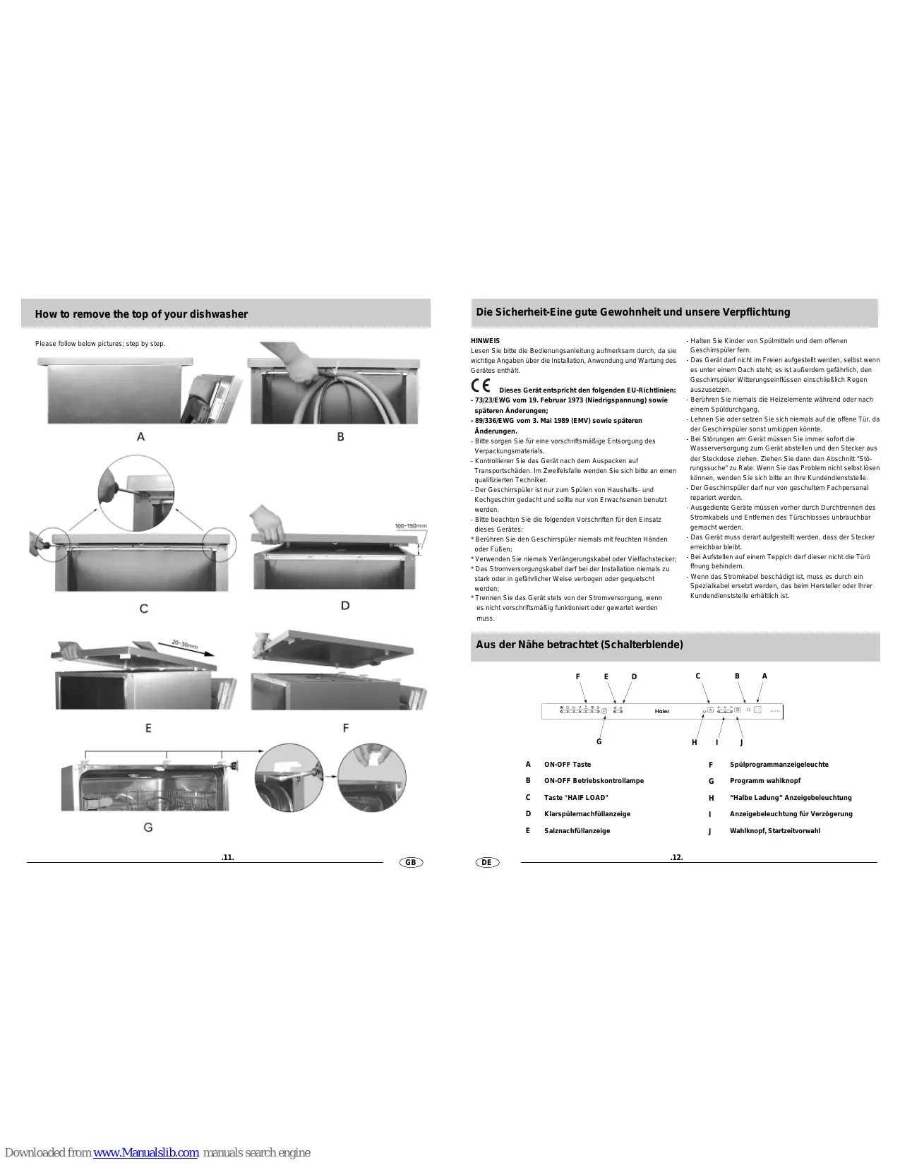 BEDIENUNGSANLEITUNG DW12-D2147FBIS - DW15-T2147 - DW15-T2147S HAIER