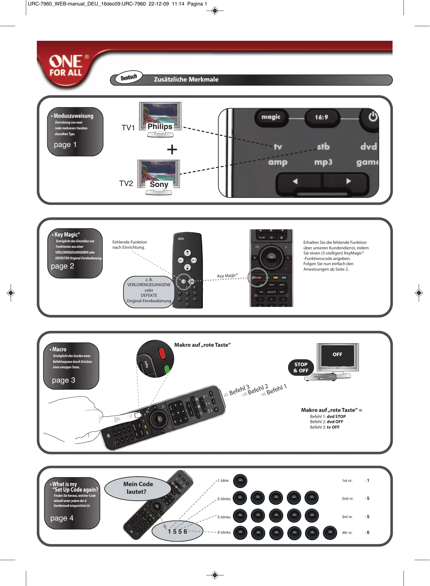 Finden Sie kostenlos die Bedienungsanleitung des Geräts URC 11 ONE FOR ALL als PDF.