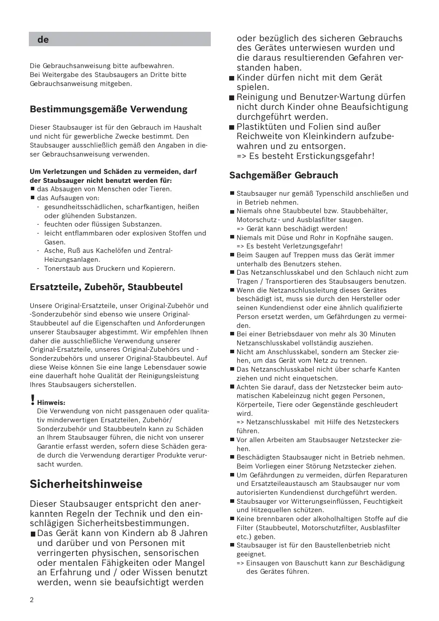 Bei Weitergabe des Staubsaugers an Dritte bitte Gebrauchsanweisung mitgeben.