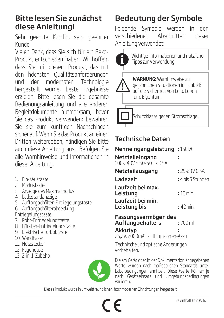 1 Wichtige Hinweise zu Sicherheit und Umwelt