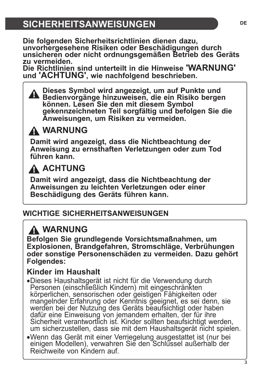 •Halten Sie sich nicht an der Gerätetür, den Lagerfächern und den