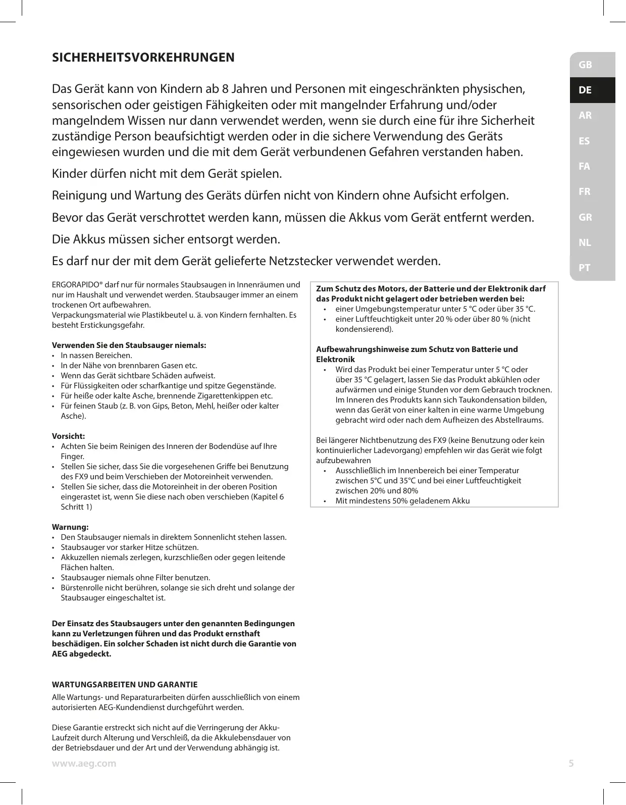 FX9-1-IBM - Kabelloser Staubsauger AEG - Kostenlose Bedienungsanleitung