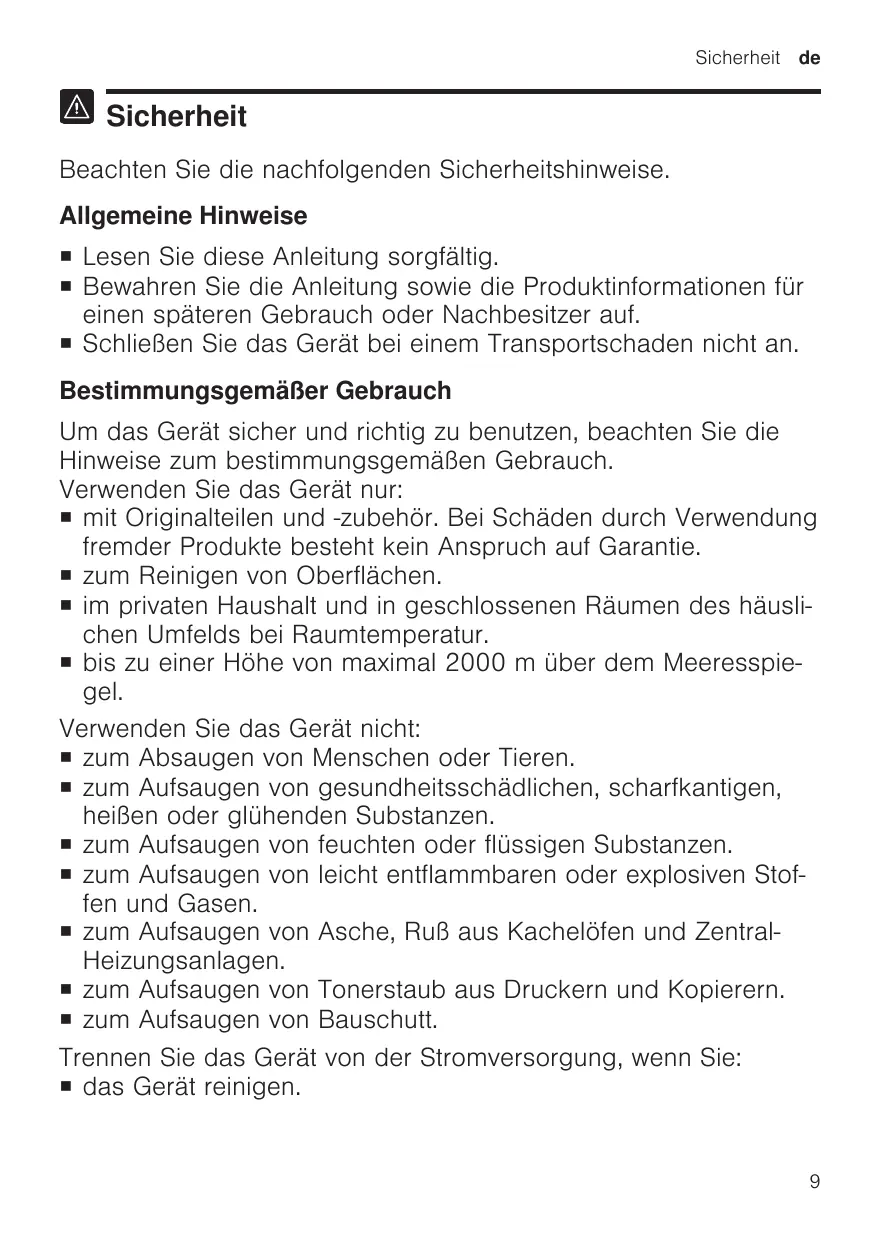 Bestimmungsgemäßer Gebrauch 9