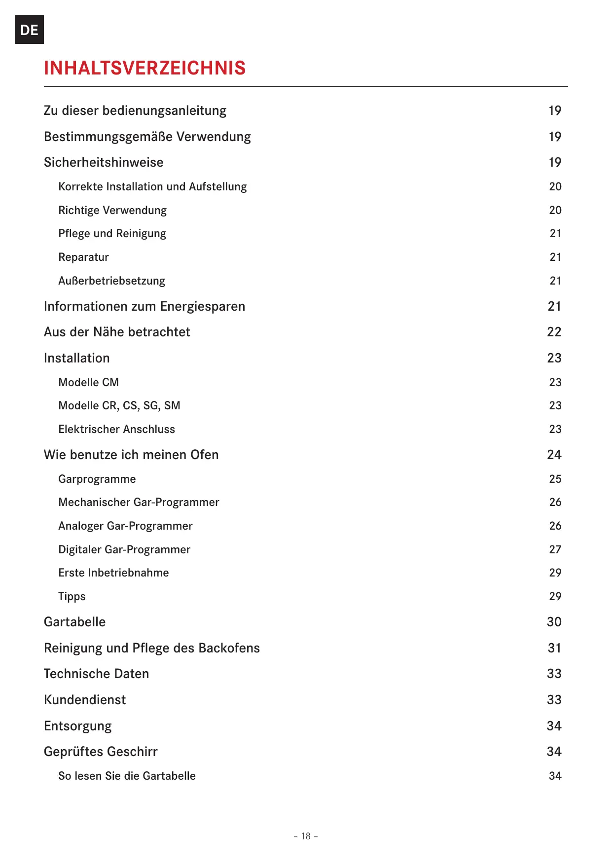 DE REINIGUNG UND PFLEGE DES BACKOFENS Der Ofen kann auf herkömmliche Weise (mit Reinigungsmitteln, Ofenspray) gereinigt werden, aber nur, wenn er sehr schmutzig ist und die Flecken besonders hartnäckig sind. Für die regelmäßige Reinigung Ihres Ofens (nach jeder Verwendung) wird das folgende Verfahren empfohlen: XXDrehen Sie den Programmwahlschalter auf „Normale Ober-/Unterhitze“ . XXStellen Sie den Knopf/Schalter für die Temperaturauswahl auf 70°C. XXGießen Sie 0,6 Liter Wasser in ein Backblech und setzen Sie dieses in die unterste Führung ein. Nach rund 20 Minuten sind die Speisereste auf dem Email durchgeweicht, sodass Sie sie mit einem feuchten Tuch abwischen können. Wichtig Ziehen Sie vor dem Durchführen von Wartungsarbeiten am Backofen immer den Netzstecker oder schalten Sie den Strom am Hauptschalter des Stromnetzes ab. Der Gerätebetrieb ist mit und ohne Führungen für die Backbleche gleichermaßen sicher. –– Die emaillierten Teile und die Edelstahlflächen bleiben wie neu, wenn Sie dieselben sorgfältig mit Wasser oder Spezialreinigungsmitteln säubern und sorgfältig abtrocknen. –– Vermeiden Sie unbedingt Metallschwämme oder Stahlwolle, Chlorwasserstoffsäure oder andere Produkte/Utensilien, die Kratzer oder matte Stellen hinterlassen können. Verwenden Sie keine Dampfreiniger und keinen direkten Wasserstrahl. –– Flecken unterschiedlicher Zusammensetzung (Soßen, Zucker, Eiweiß und Fett), die sich am Backofenboden bilden können, stammen immer von spritzenden oder überlaufenden Speisen. Spritzer bilden sich während des Garvorgangs aufgrund zu hoher Temperaturen, während die Speisen überlaufen, wenn zu kleine Formen gewählt oder das Aufgehen der Speisen während des Garens falsch berechnet wurde. Beide Unannehmlichkeiten lassen sich durch den Gebrauch von hochwandigem Geschirr oder den Einsatz der mitgelieferten Fettpfanne vermeiden.