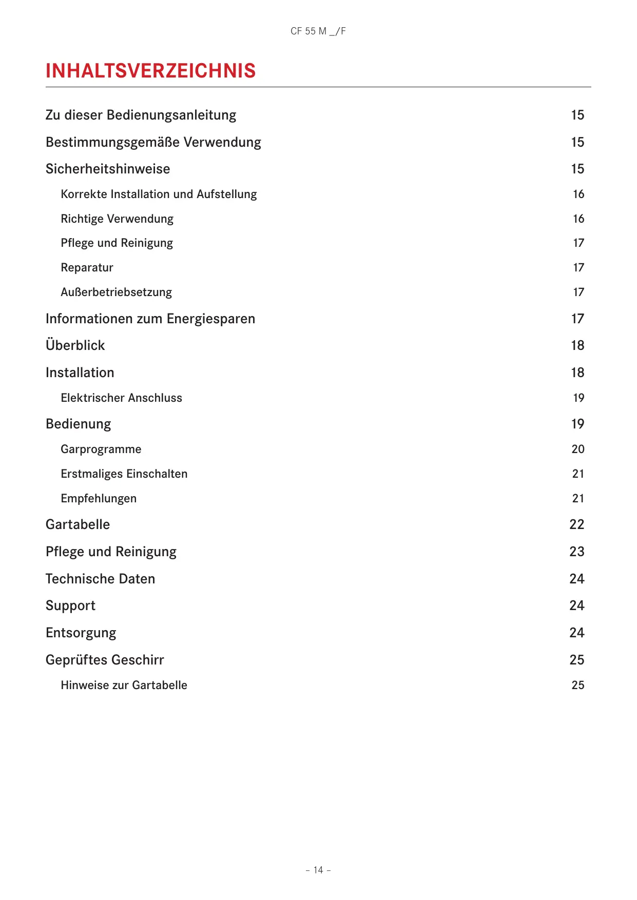- Halten Sie die Tür während der Dauer der Garzeit geschlossen. ** Wenn 10 min verstrichen sind, drehen Sie ihn. – 25 – CF 55 M _/F SOMMAIRE À propos de ce manuel