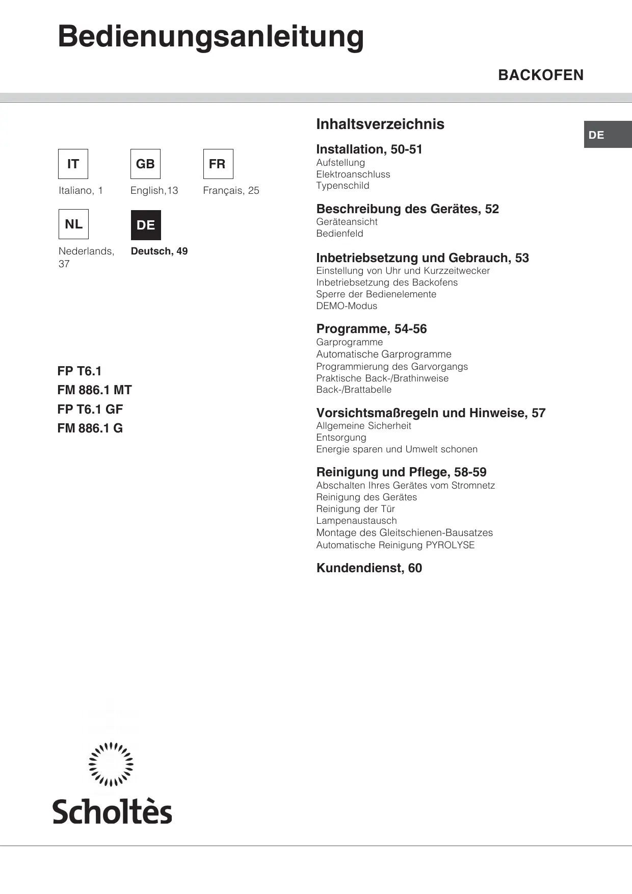 FM886.1G MT S - SCHOLTES - Kostenlose Bedienungsanleitung