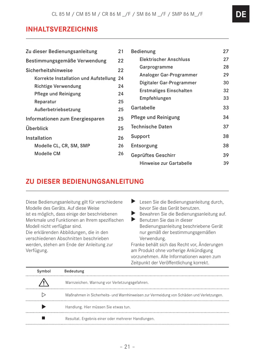 CL 85 M PW - Multifunktionsofen FRANKE - Kostenlose Bedienungsanleitung