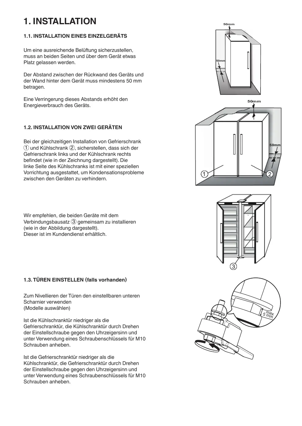 1.3. CHARNIÈRES AJUSTABLES (selon le modèle)