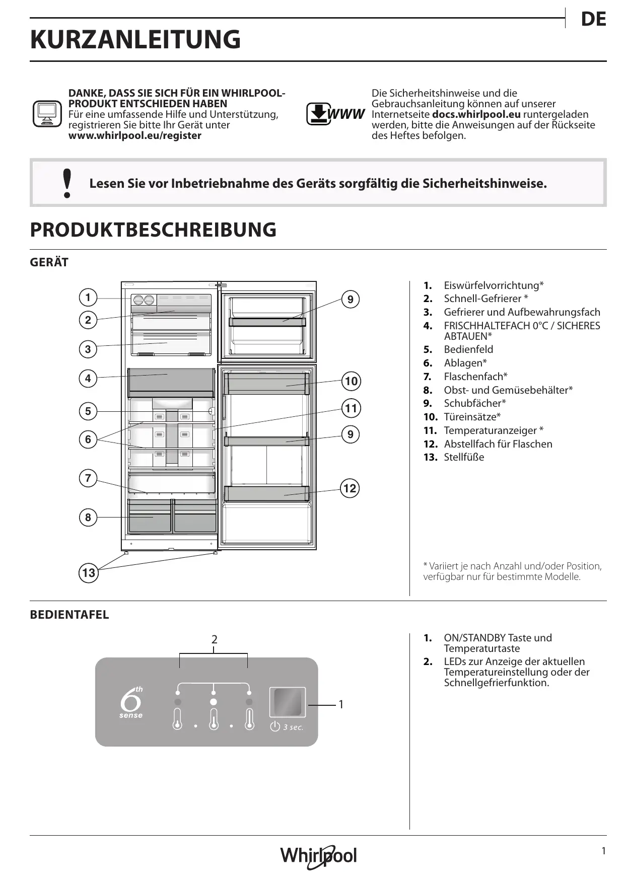Finden Sie kostenlos die Bedienungsanleitung des Geräts WT70I832X WHIRLPOOL als PDF.