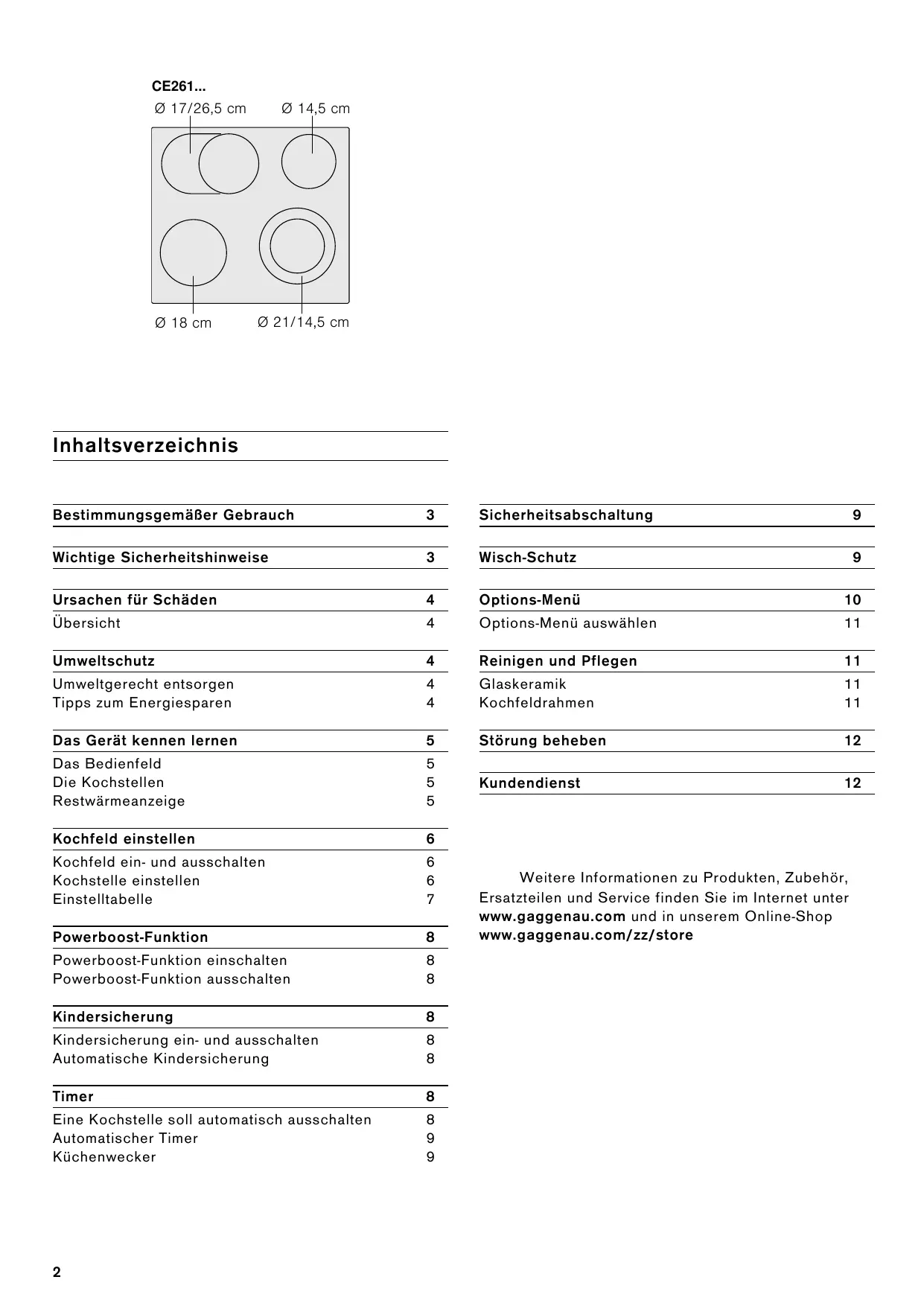 CE261114 - CE261114 - Kochfeld GAGGENAU - Kostenlose Bedienungsanleitung