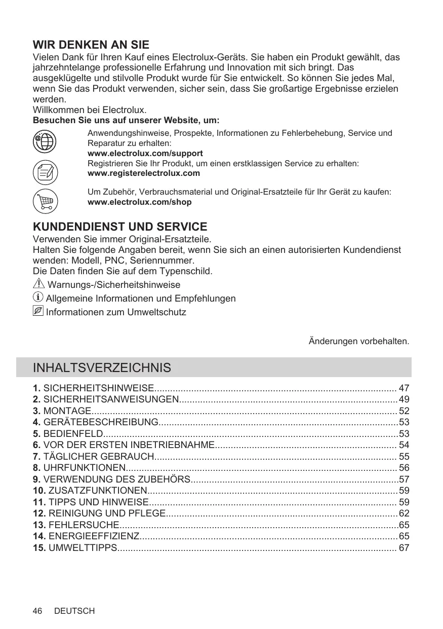 Avant de contacter notre centre de service agréé, assurez-vous de disposer des informations suivantes : Modèle, PNC, numéro de série. Ces informations figurent sur la plaque signalétique. Avertissement/Consignes de sécurité Informations générales et conseils Informations environnementales Sous réserve de modifications.